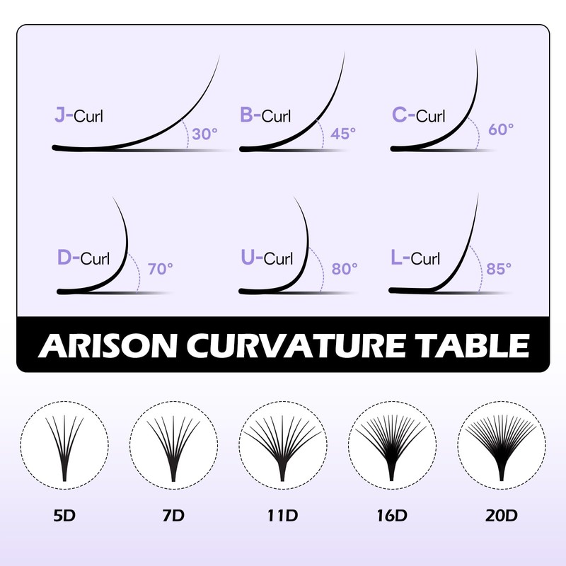 - Lash curvature: J-30°, B-40°, B+-45°, C-60°, CC-65°, D-70°, DD-75°, U-80°, L-cut 90°, curvature 30°-80°, accurate to every degree, easy and quick to form