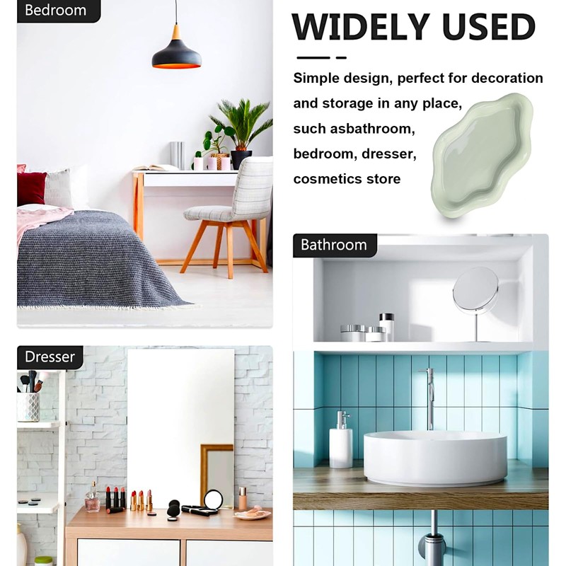 - 【Cloud Shaped Delight】- This decorative tray is designed in a charming cloud shape, so the edges are irregular, like the clouds in the sky changing. adding a touch of whimsy to your room. The unique and aesthetic design sets it apart, making it a delightful addition to your dresser, vanity, bedroom, living room, or bathroom.
