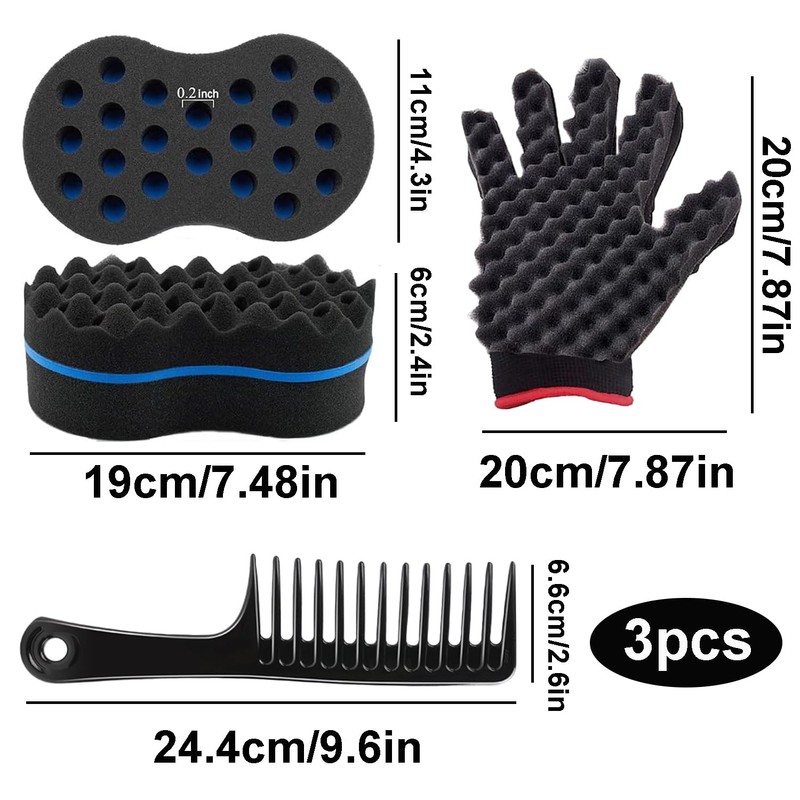 - Package contents: 3 pieces curling styling tools, including 1 large Afro hair sponge, 1 woven Afro comb and 1 curl glove, which are easy to distinguish and are suitable for different family members.