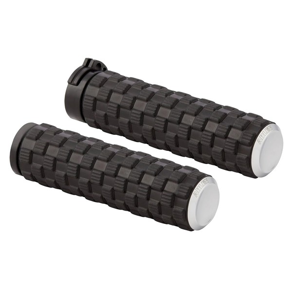 Perfect fusion of grip, style and comfort. Each rubber grip design features excellent traction for your hands to take full control of your motorcycle. All of the billet aluminum accents are intricately machined into pieces of art and later finished in flawless chrome or black anodizing. All kits include an installed throttle sleeve, grip glue and simple to follow instructions. Matching footpegs and shifter pegs are available separately.