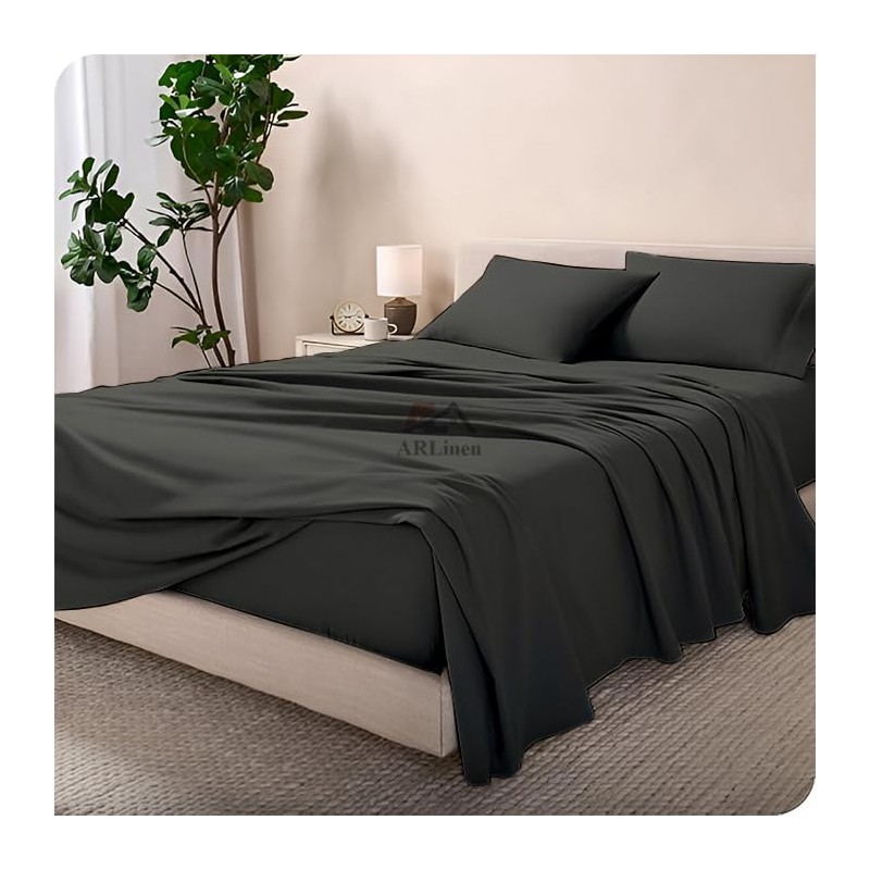ARlinen Sheets Set Full Size Dark Grey Solid 10 Inch Deep/Drop Fitted Sheet 400 TC 4 PCs Bedding Sets.