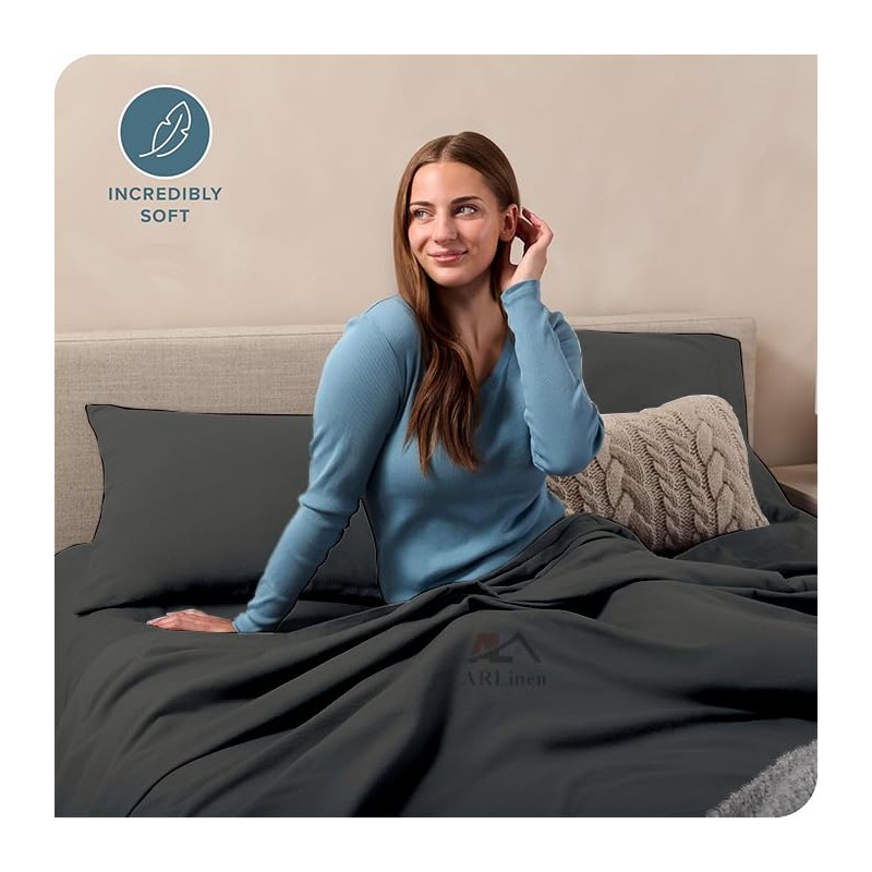 ARlinen Sheets Set Full Size Dark Grey Solid 10 Inch Deep/Drop Fitted Sheet 4...