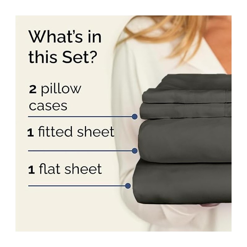 • Set Includes: 4 Piece Full Sheet Set Flat Sheet (96”x 81”) Fitted Sheet (75”x 54”) 2 Pillow Cases (20”x 30”)
