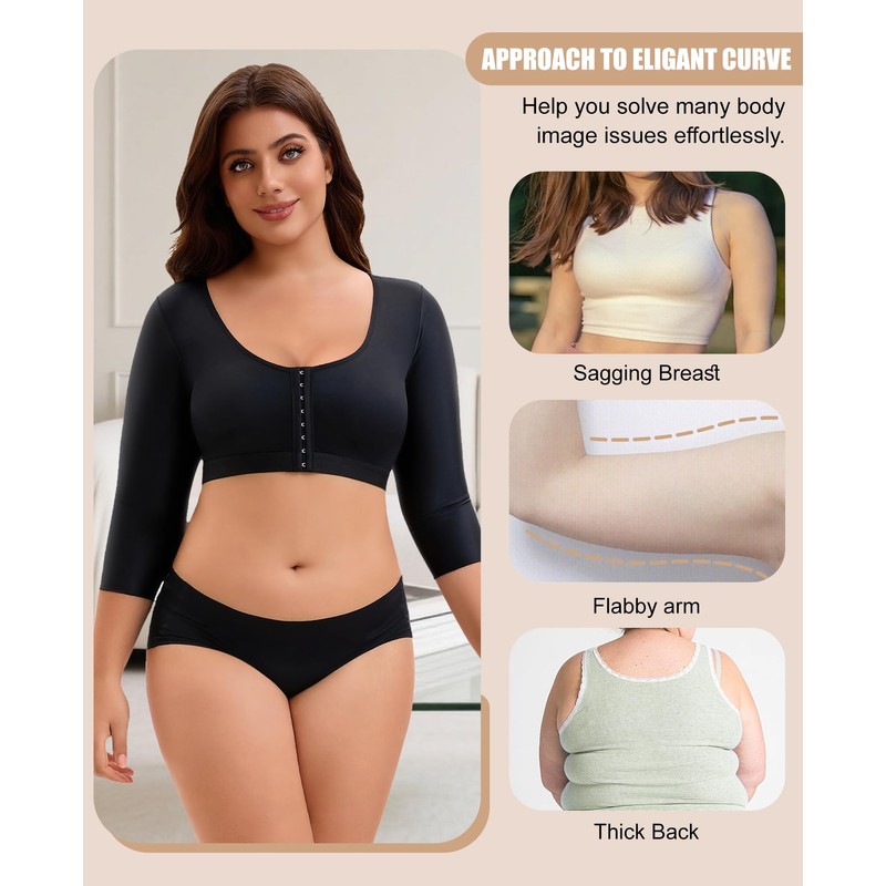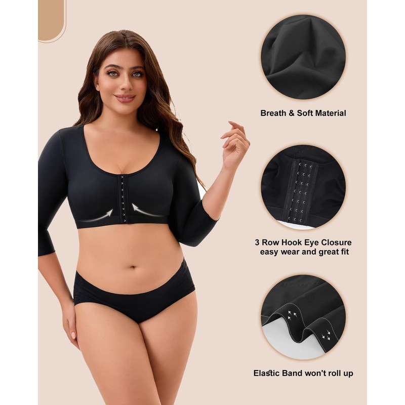 - Arm Compression Top: Features an adjustable three-row hook-and-eye closure, making it ideal for post-breast surgery recovery (including augmentation, reduction, reconstruction, mastectomy, and lifts).
