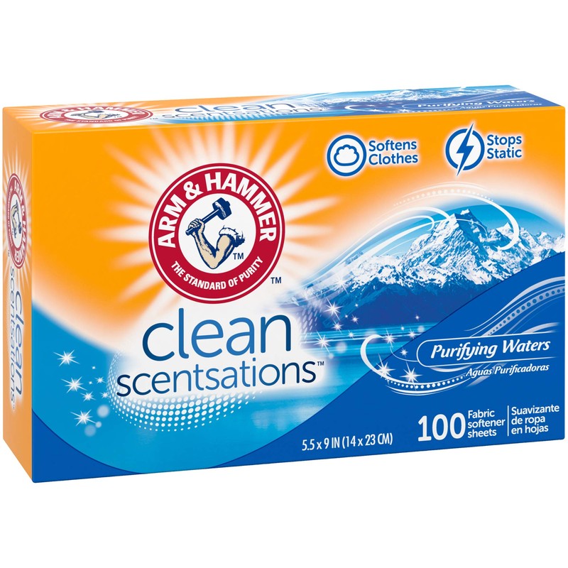 ARM & HAMMER ARM & HAMMER Fabric Softener Sheets, 100 sheets, Purifying Waters