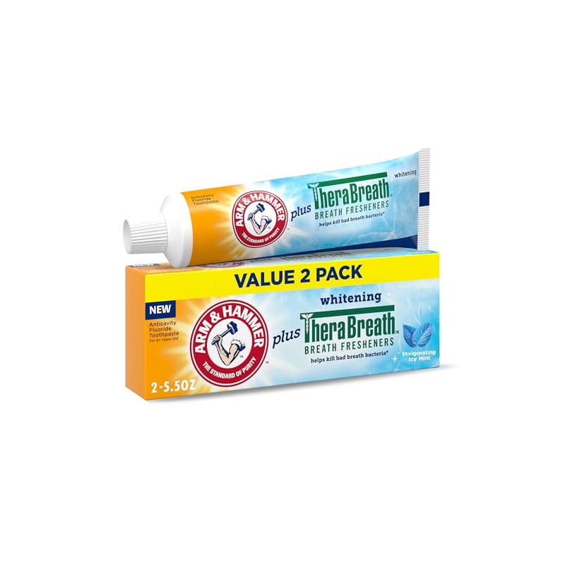 - Includes two 5.5 Oz tubes of ARM & HAMMER Toothpaste Plus TheraBreath Breath Fresheners, Invigorating Icy Mint flavor