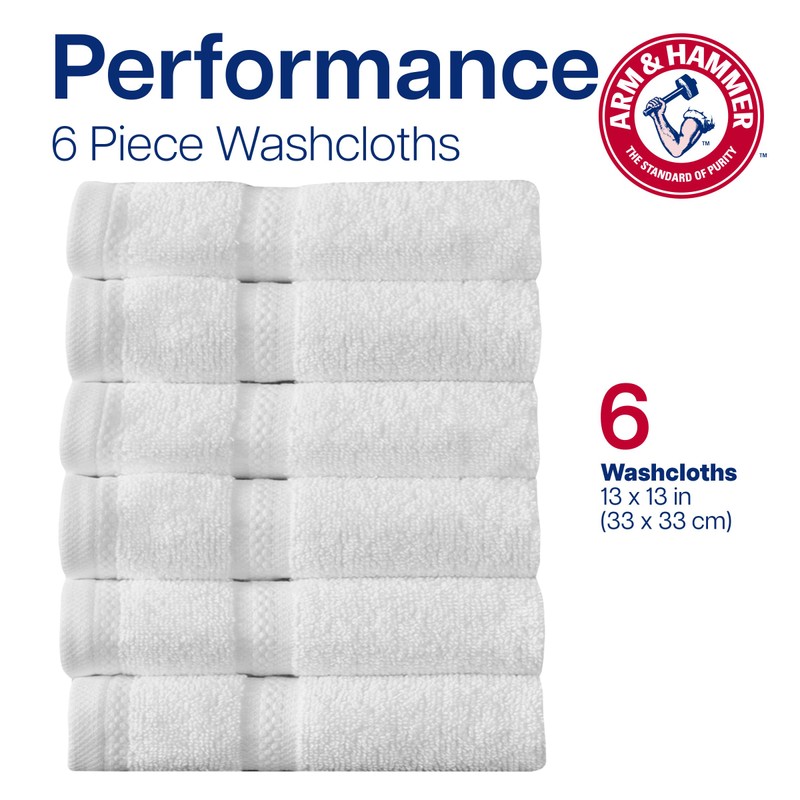 Arm & Hammer Performance Towel Washcloth Set, 6 Piece, White