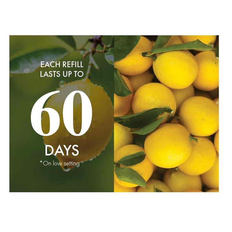 - ● Larger Refill Volume: More fragrance for longer-lasting freshness compared to competitors. Enjoy up to 60 days of fragrance* (*per refill, on low setting).