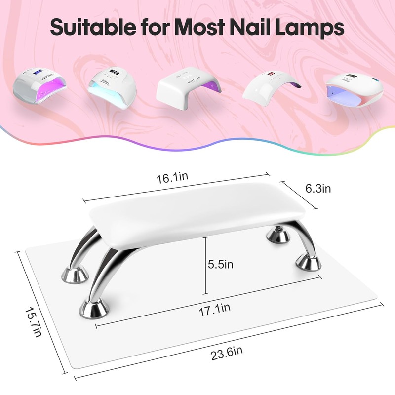 • Easy to install: This nail arm rest comes with a full set of installation tools for easy and quick installation. It can also be quickly disassembled when not in use for easy storage. This practical manicure product is compatible with most nail lamps and is suitable for various nail tech desk. And it is one of the must-have nail tech supplies and nail essentials tools for nail technicians