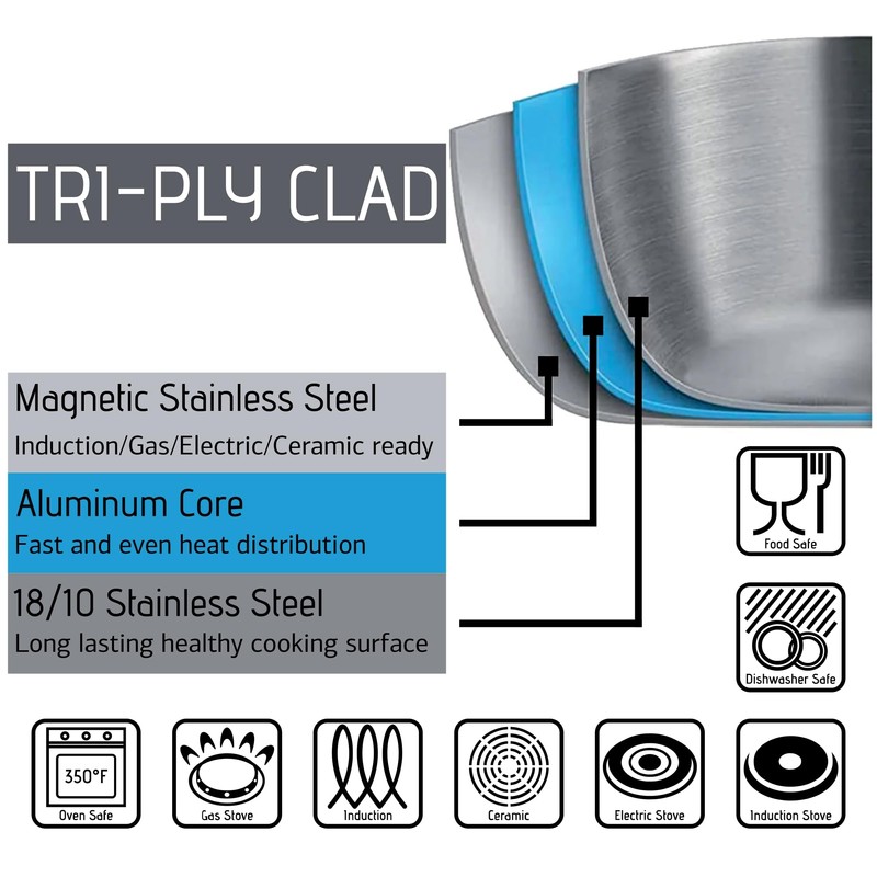 Arma Pro Tri-Ply Clad 18/10 Stainless Steel Cookware Set