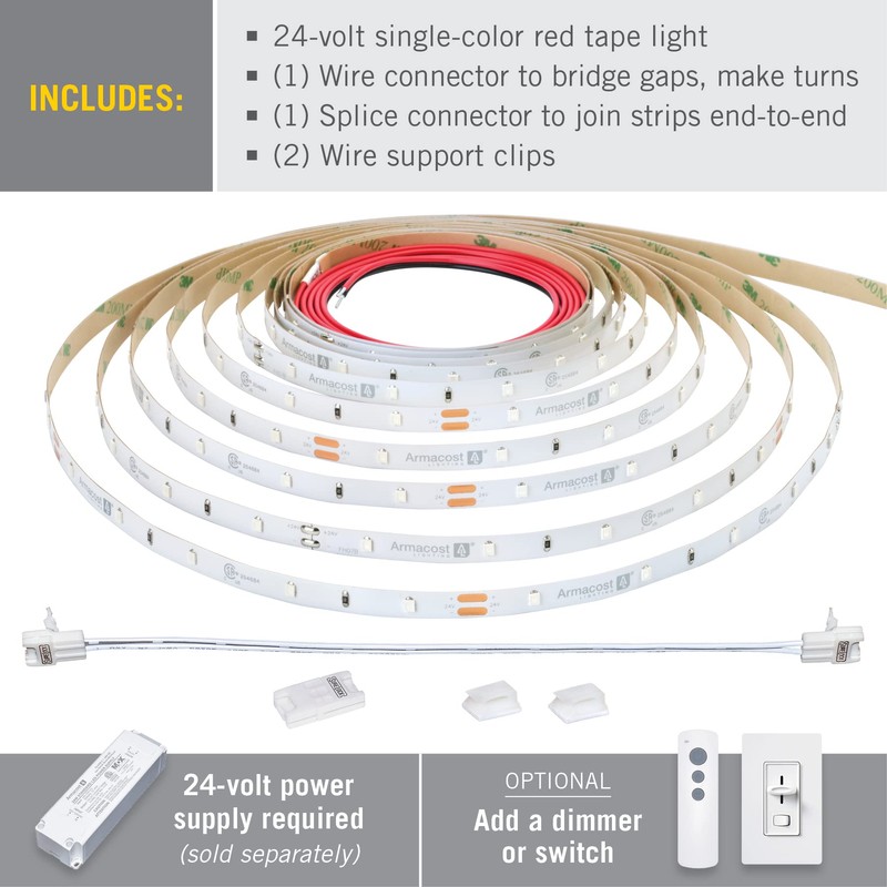 Armacost Lighting RibbonFlex Pro 24V Red LED Strip Light Tape 30 LED/m 16 ft (5m) 633230