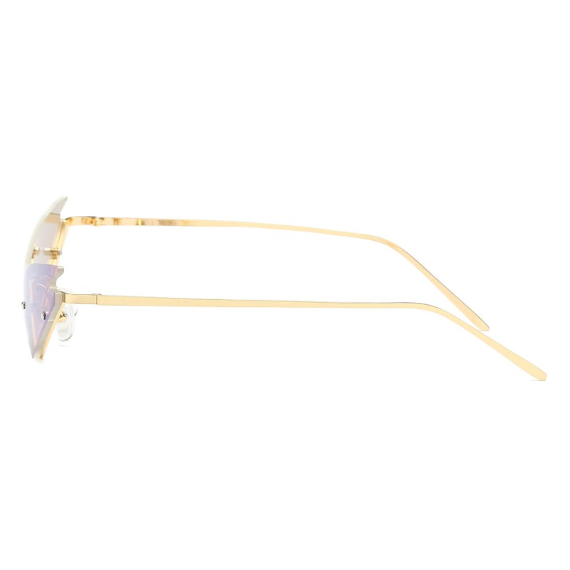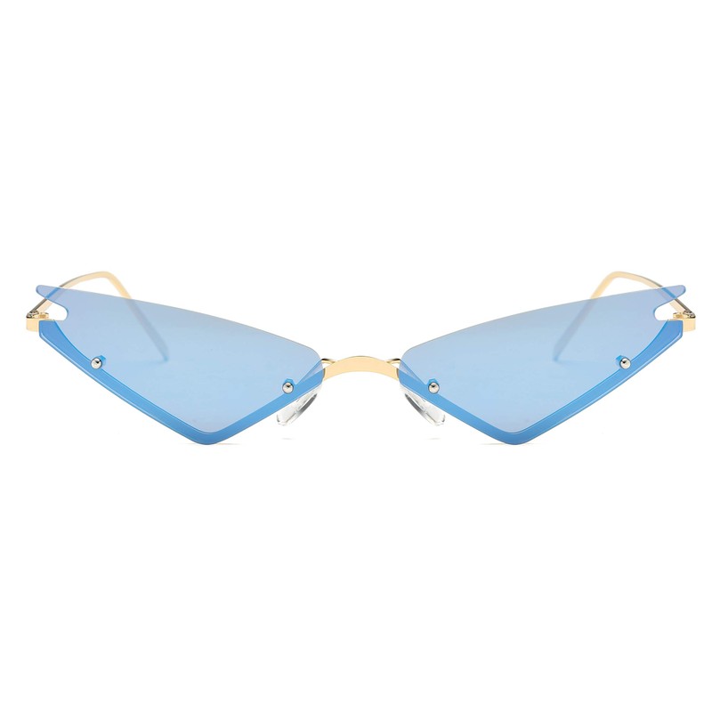 Armear Small Cateye Sunglasses Futuristic Rimless Mirrored Lens Blue 63mm