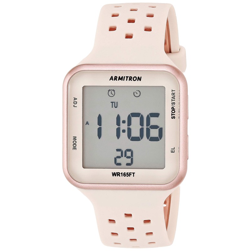 Armitron Sport Unisex 40/8417PBH Digital Chronograph Rose Gold-Tone and Blush Pink Perforated Silicone Strap Watch