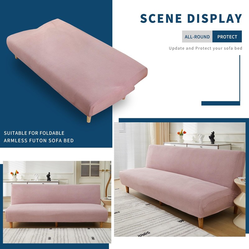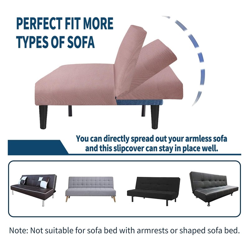 Armless Sofa Bed Slipcover Couch Cover Without Armrests Stretch Folding Futon Cover Elastic Removable (Color : Pink, Size : XL(195-210cm))