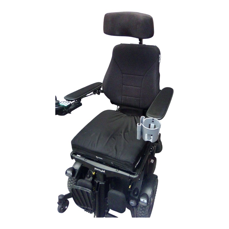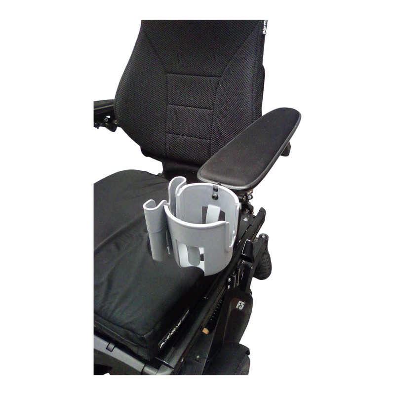 Armrest Cup Holder with Phone Mount, Gray, Compatible with Permobil Unitrack System