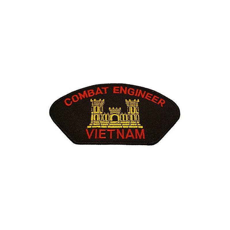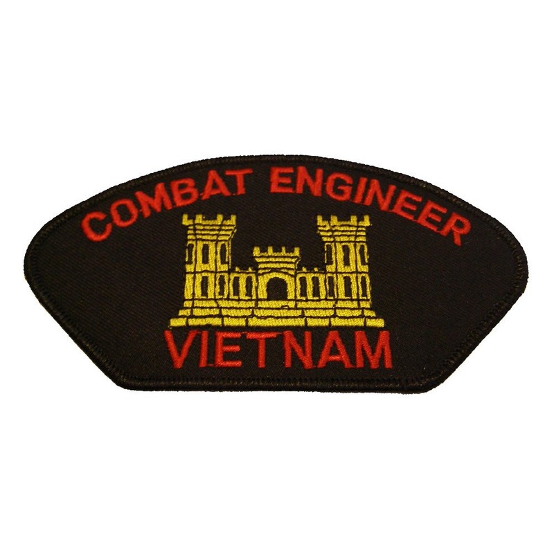 - 5 1/4" wide x 2 3/4" tall PATCH. High Quality Embroidered COMBAT ENGINEER VIETNAM with CASTLE - Red and Gold on Black Background - Very Durable with Iron On Backing.