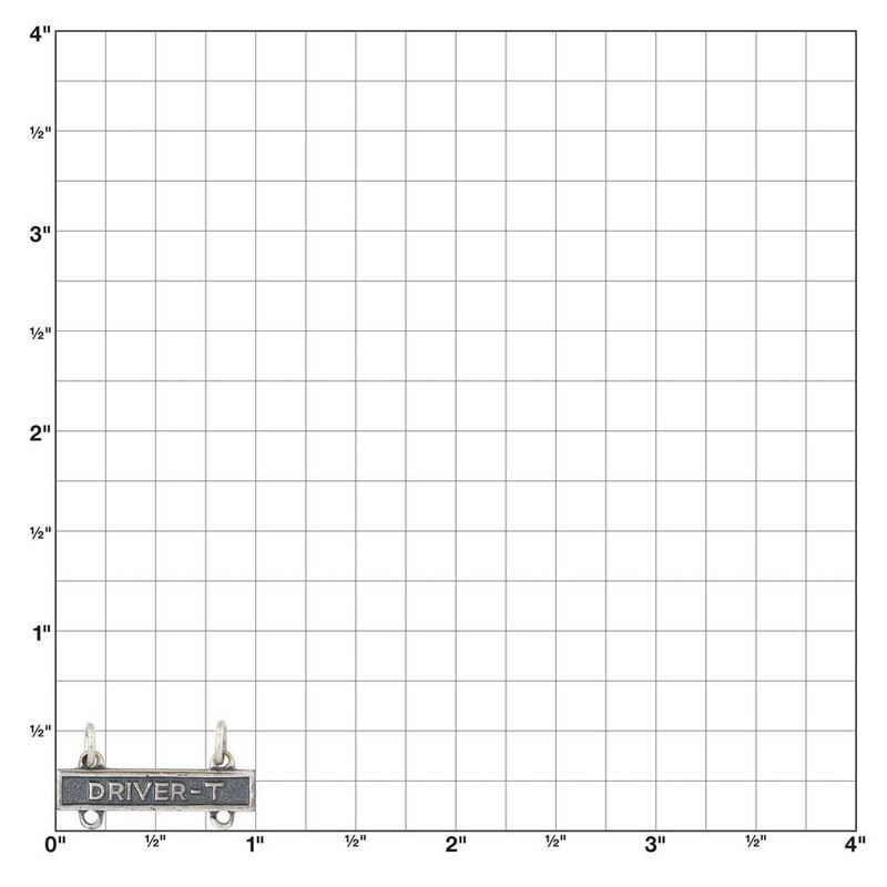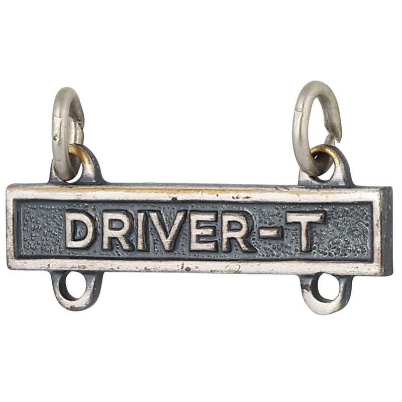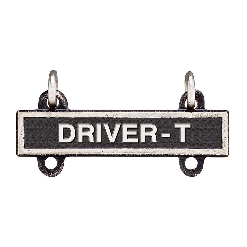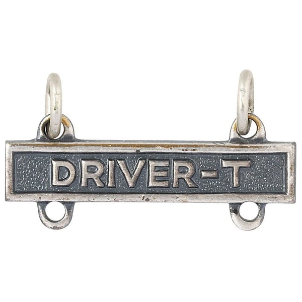 This Driver-T qualification Bar is worn suspended from the Driver and Mechanic Badge, which was first approved in 1942. The Driver and Mechanic Badge is awarded to soldiers who have completed training and met standards which qualifies them to operate and repair military automotive machinery. The Driver-T Qualification Bar is 100% USA made with silver oxide finish identifies a soldier with expertise in operating and maintaining tracked vehicles. For soldiers who specialize in other machinery, we offer the Driver-M Qualification Bar (motorcycles),  Driver-W Qualification Bar (wheeled vehicles), and Operator-S Qualification Bar (special mechanical equipment) in a variety of finishes.