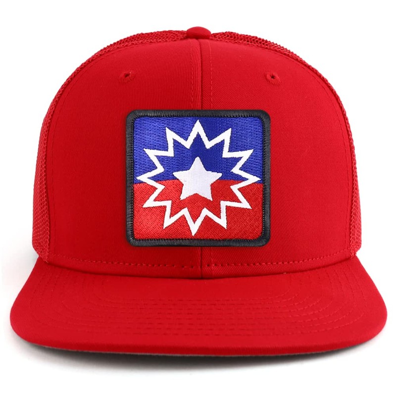 Armycrew Juneteenth Freedom Day Square Embroidered Patch Flatbill Mesh Snapback Cap - Red - 2XL