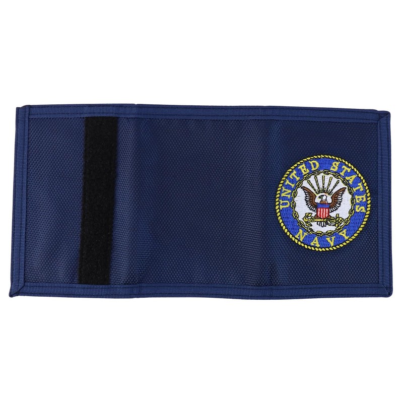 - Different military logo and American flags embroidered trifold wallet with hook and loop closure