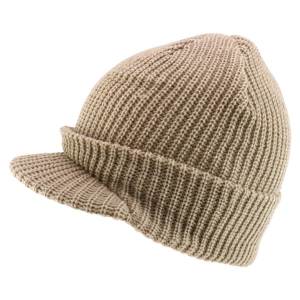 Armycrew Plain GI Thick Ribbed Beanie with Bill Visor Cap (One Size, Khaki)