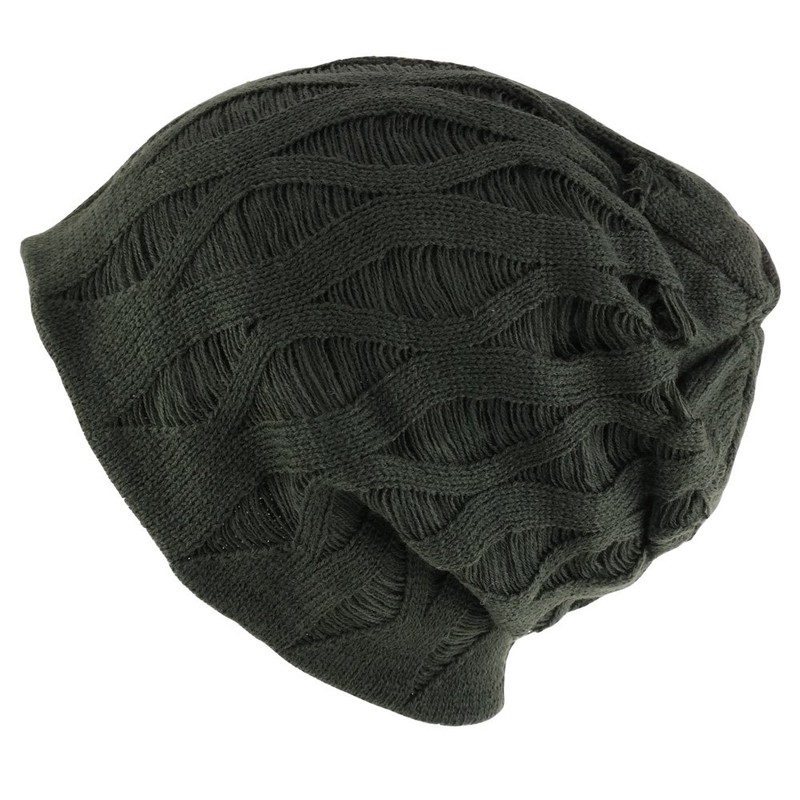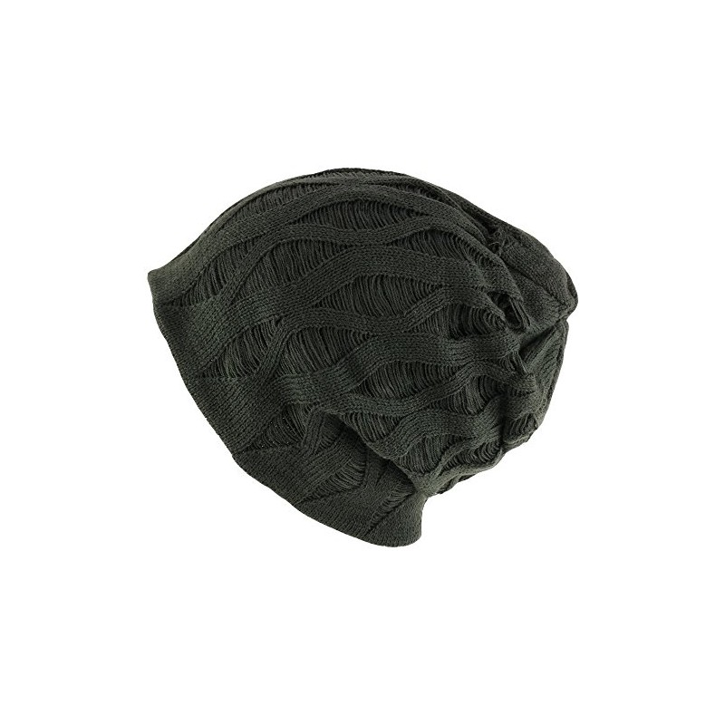 Armycrew Rasta Deep Crown Acrylic Distressed Reversible Slouchy Warm Beanie Hat - Olive