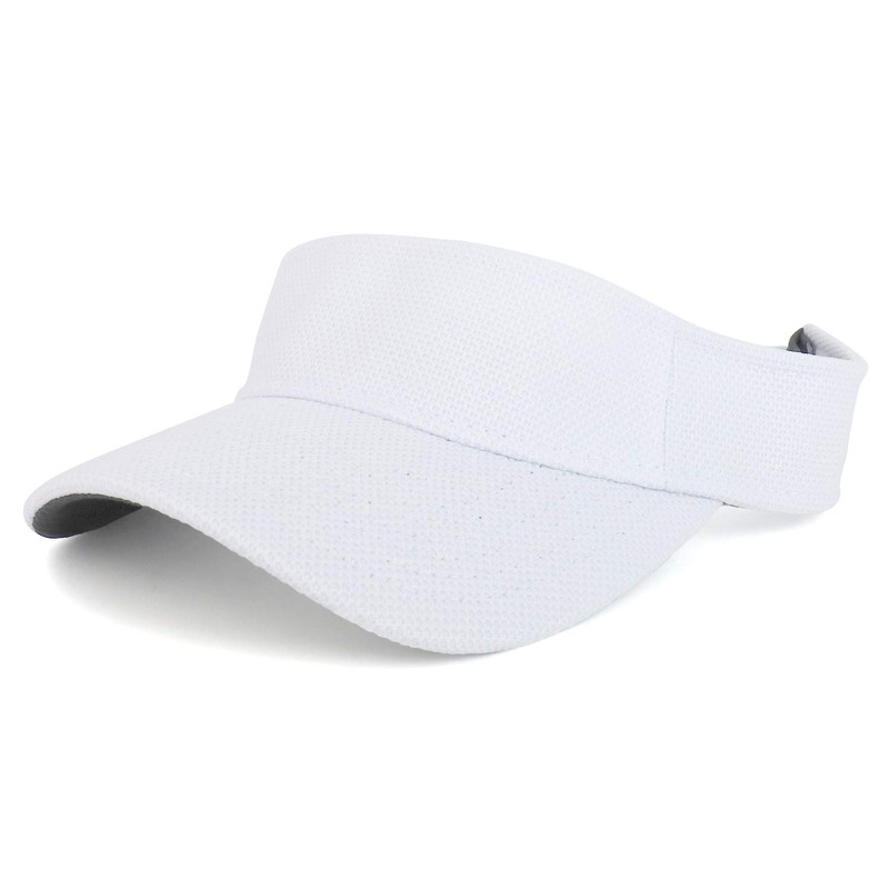 Armycrew UPF 50+ Pique Breathable Performance Golf Sun Visor Cap. 99% Polyester , 1% Spandex. UPF 50+ sun protective mesh visor cap great for summer outdoor activities. Fitted with an inner sweatband. Stiff and pre-curved bill, grey color under bill. Breathability, Moisture control, Lightweight. One size fits most with an adjustable plastic snap closure.
