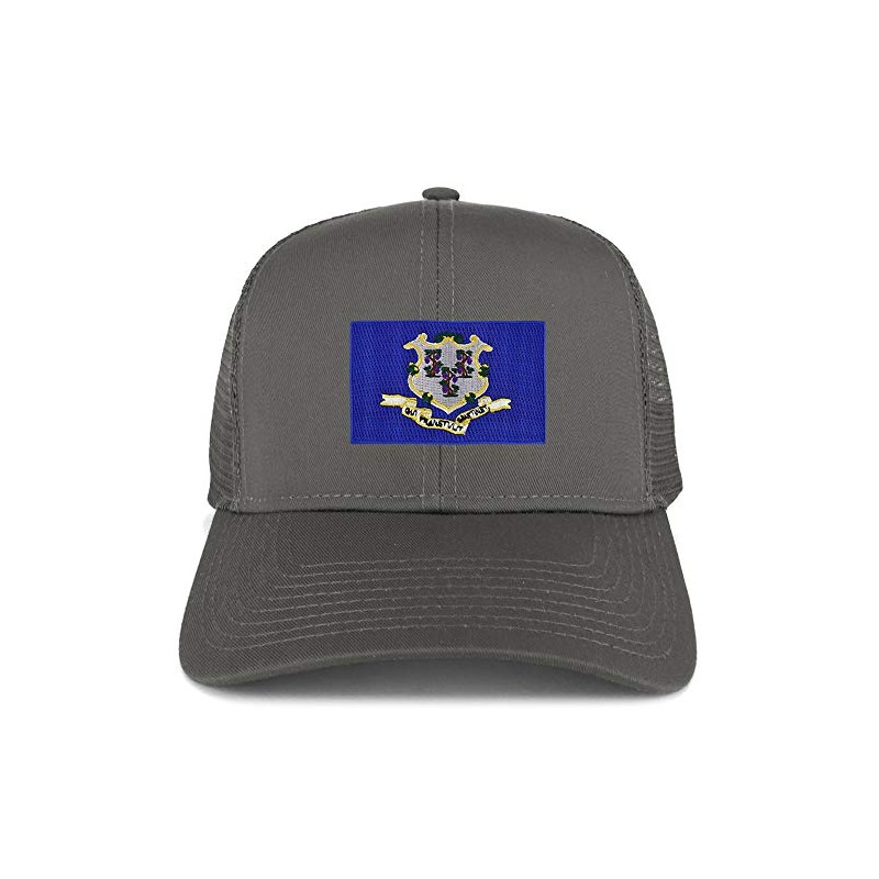 Armycrew XXL Oversize New Connecticut State Flag Patch Mesh Back Trucker Cap - Charcoal
