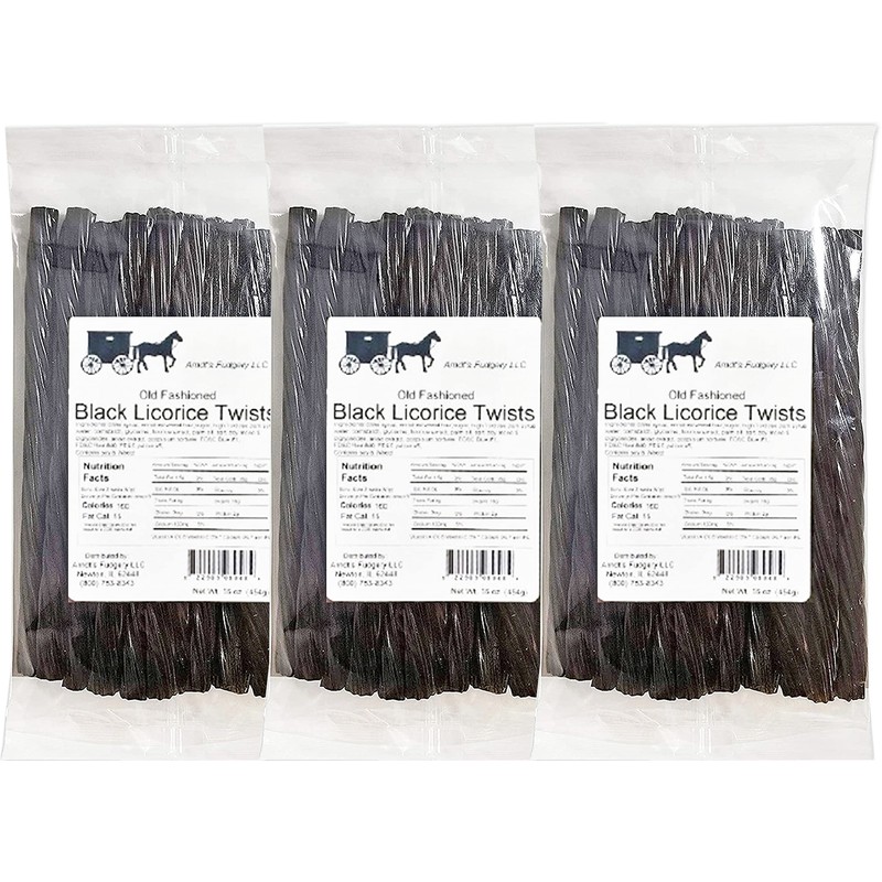 Arndts Fudgery Amish Licorice Twists - Three 16 Oz Pkgs - Black