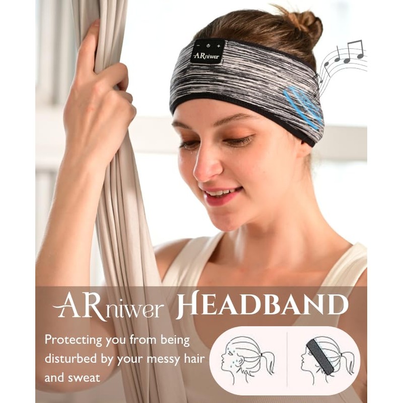 ARniwer Bluetooth Music Headband Wireless Bluetooth speaker with crystal clear stereo cradle sound, powerful bass, built-in HD speaker. Suitable for sleeping, doing yoga, running, exercising, etc.
