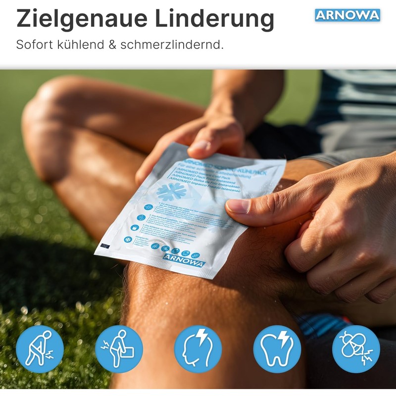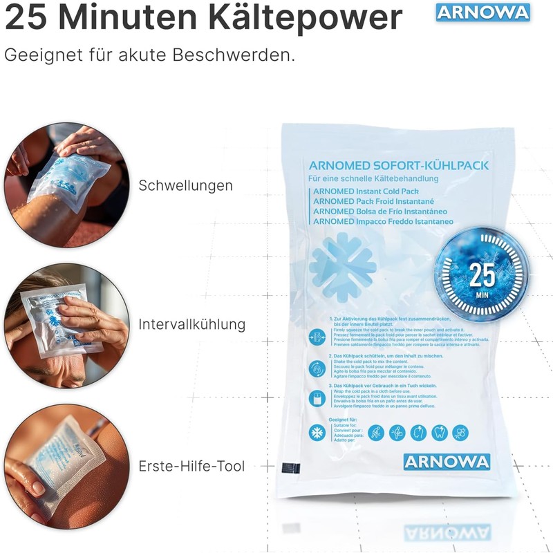 Versatile – whether as an instant cold pack in sports, as cooling pads for kinking injuries or for refreshing in summer: the ARNOMED cooling compresses are your mobile to go cold aid.