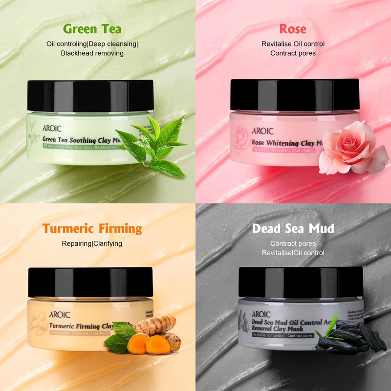 AROIC 4 Pack Clay Mask, Vitamin C Turmeric, Dead Sea Mud, Rose, Green Tea Clay Masks Set, Facial Mask Skincare for Deep Cleaning, Oil Control, Moisturizing, Recovery Mud Masks, Gift Set for Women