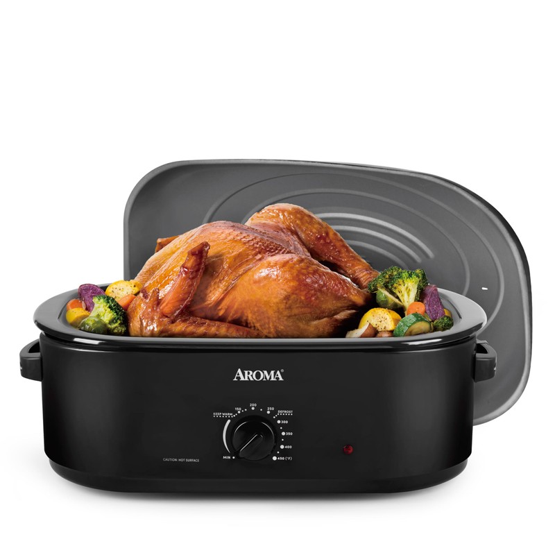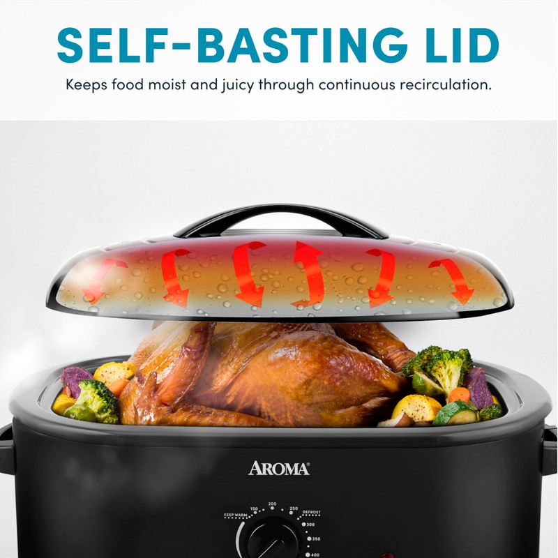 AROMA 18Qt. Roaster Oven with Self-Basting Lid, Fits 22-lb. Turkey, Adjustable Temperature Settings, Keep Warm Setting, Black (ART-718B)