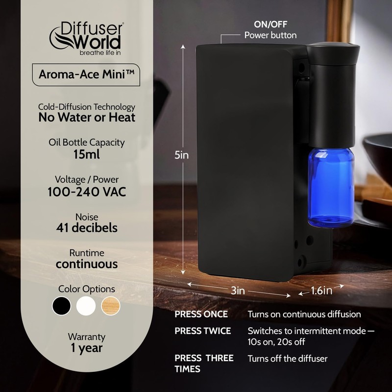 - QUIET AND SLEEK ROOM FRAGRANCE DIFFUSER: Operating at 41 decibels, our room diffuser functions as a bedroom diffuser and home aroma diffuser. Its woodgrain finish complements any décor while releasing fine mist. Use as a humidifier essential oil diffuser or scented oil diffuser that fits seamlessly as a room fragrance diffuser or home diffuser oil option for a calming atmosphere.