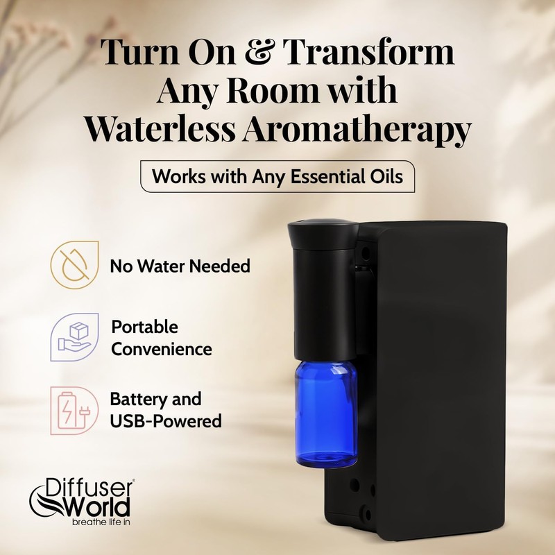 - PORTABLE ELECTRIC DIFFUSER WITH USB POWER: Our cordless electric diffuser for home and office offers rechargeable battery power and USB connectivity. Use it as an atomizing diffuser, nebulizing diffuser, cool diffuser or home air diffuser anywhere without cords. Suitable as a small diffuser for a bedroom or diffuser for office, this nebulizing diffuser delivers soothing aromas wherever you go.