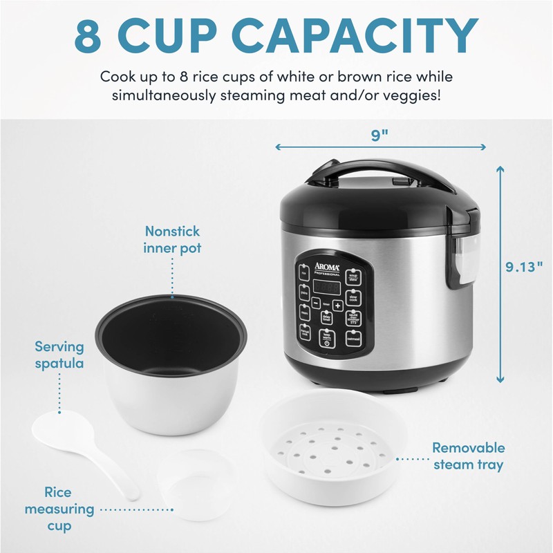 AROMA® Professional 8-Cup (Cooked) / 2Qt. Digital Rice & Grain Multicooker, ARC-984SBD