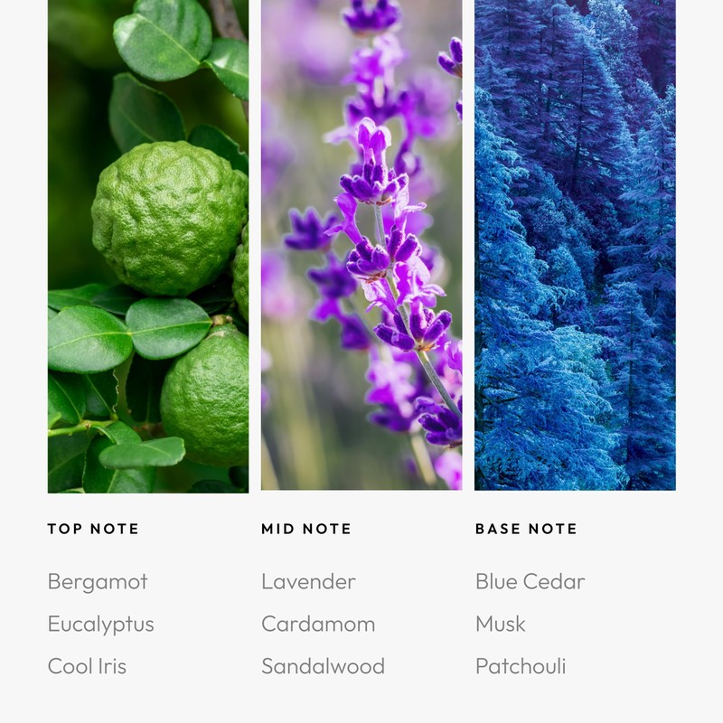 - Experience the serenity of a moonlit meadow with our Deep Blue Cedar & Lavender Fragrance Oil. Delight in the harmonious blend of fresh lavender, soft lilac, and iris notes, gently enveloping you in tranquility. Let the sensual aroma of sandalwood and earthy eucalyptus transport you to a dreamy state, while the comforting base notes of blue cedar and musk linger, creating an ambiance of relaxation and bliss.