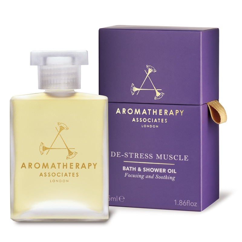 - Aromatherapy Associates De-Stress Muscle Bath and Shower Oil. Immerse fatigued muscles in warming and soothing essentials oils. The powerful blend fills your bath or shower with an invigorating aroma while the oil hydrates and softens skin.