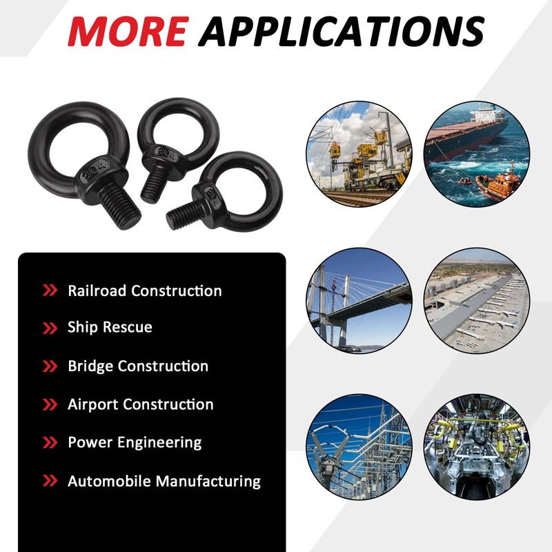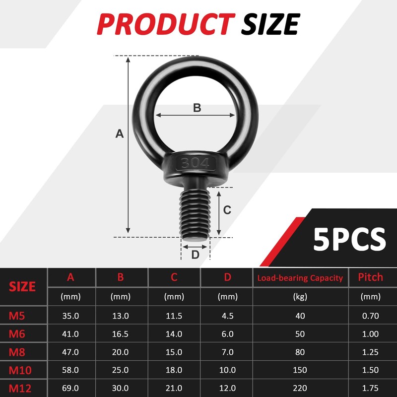 - Easy to install: these threaded eye bolts have a simple structure and can be mounted without additional tools. Deep thread, uniform force, not easy to slip, can provide you with strong lifting or hanging capacity, ideal for lifting equipment.