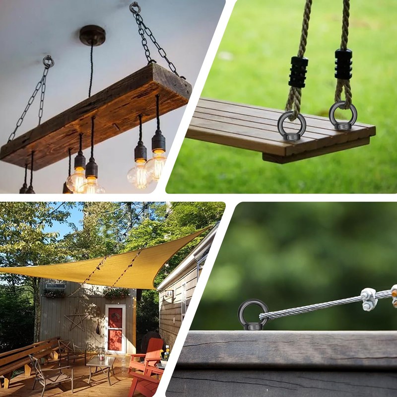 - 【Wide Applications】: screw eyelets stainless steel are widely used for connecting cables, ropes, awnings, washing lines, swing brackets, hanging chandeliers, flower pots, and also suitable for light lifting and lifting, ideal for fixing and connecting parts in life, home decoration, hardware, automotive, industrial construction.