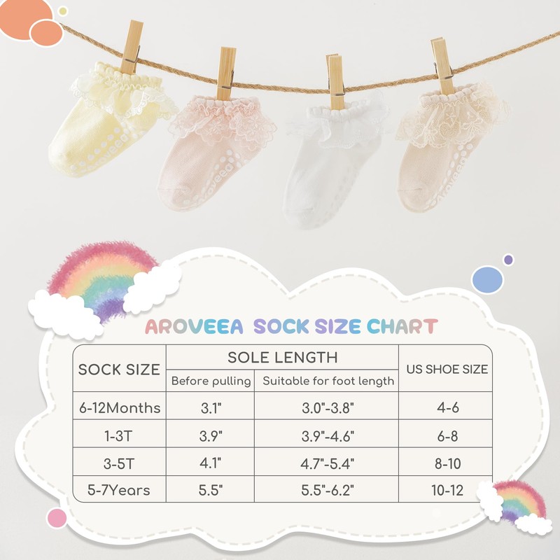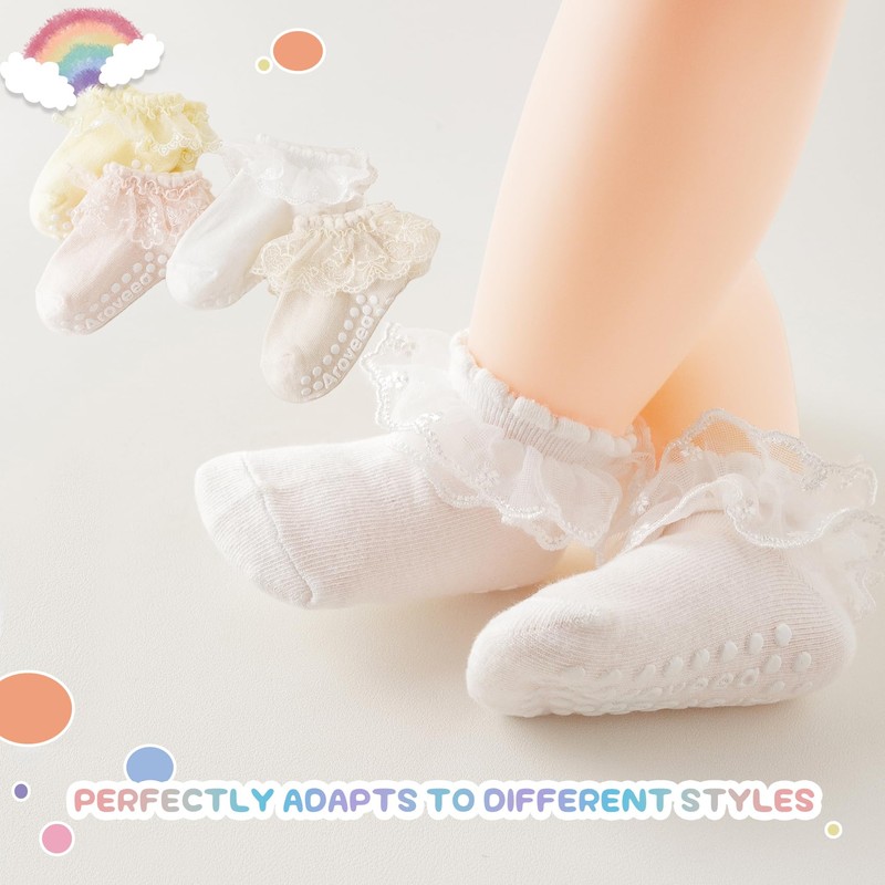- 👼BABY TODDLE LACE SOCKS 3-5T:The Cotton rich blend socks with an adequate amount of grip, which allowing your children to play and explore without unnecessary slips and falls. They are a combination of comfort and style that ensures your baby's feet are warm, safe, and adorable. These socks are touch soft, medium thickness,breathe freely, and it always been comfortable in them throughout the seasons.