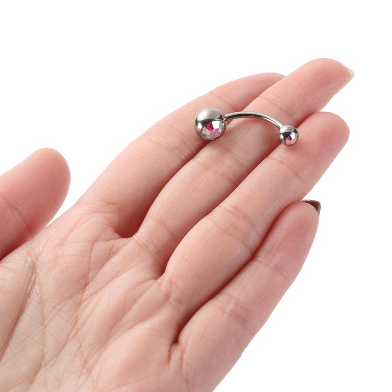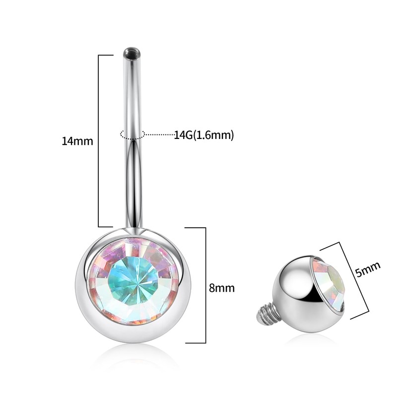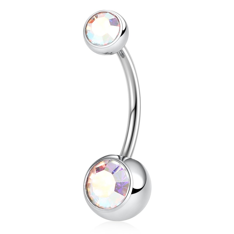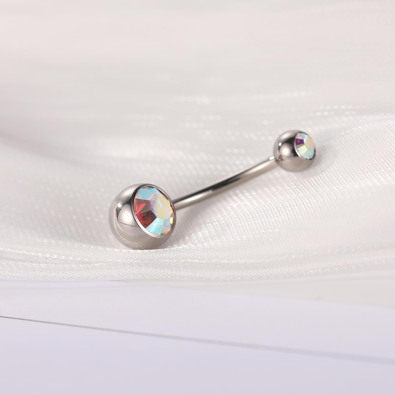 - Extraordinary design: 1 x titanium long bar belly button ring with double round clear Aurora Borealis cube zircon, very shiny, makes you unique and attractive every day.