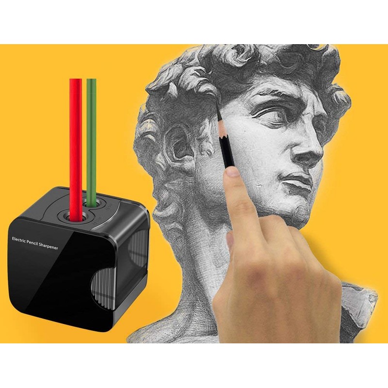 - DOUBLE HOLES FOR YOUR CHOICE Automatic pencil sharpener is suitable for your colored pencils or standard pencils. Whether you're working on homework or art, the electric knife sharpener keeps all your pencils sharp. One hole is for 6-8mm, the other hole is 9-12mm. For the most colourful pens, you can put the pencil in 9-12 mm. We recommend using a USB adapter if you use 12mm pens frequently.