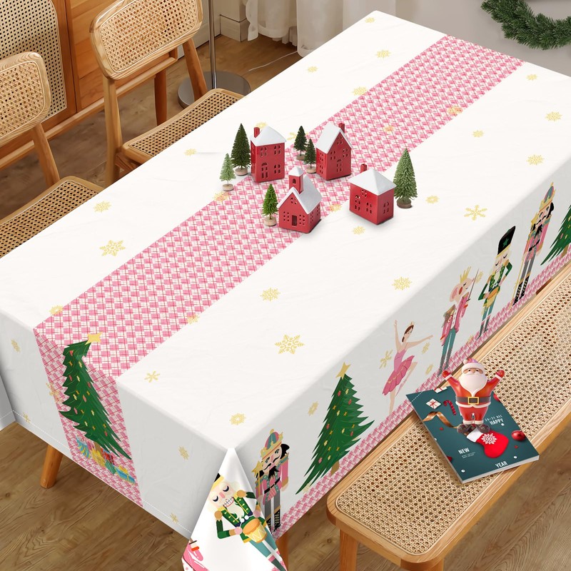 Arquiel Christmas Tablecloth, Nutcracker, Pink Christmas Tree Tablecloth, Washable, Rectangular, Easy Care Tablecloth for Kitchen, Parties, Decoration, Wedding, Festival (152 x 213 cm)
