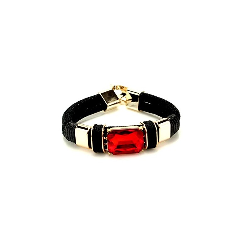 Arras Creations Elegant Red Stone Leather Bracelet / AZBRMA102-GRD