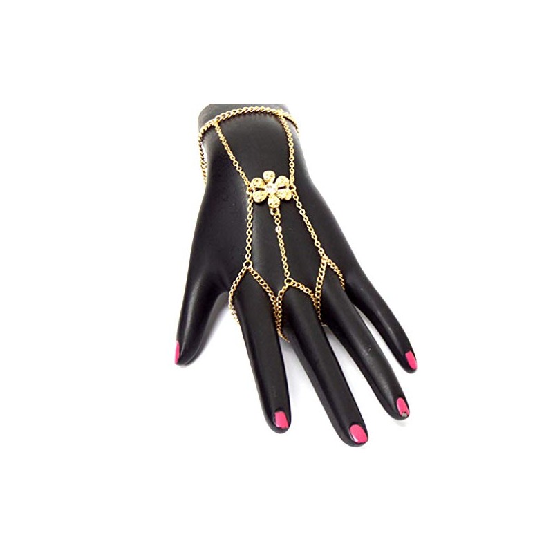 Arras Creations Single Flower with Chain Slave Ring and Bracelet Set Hand Cha...
