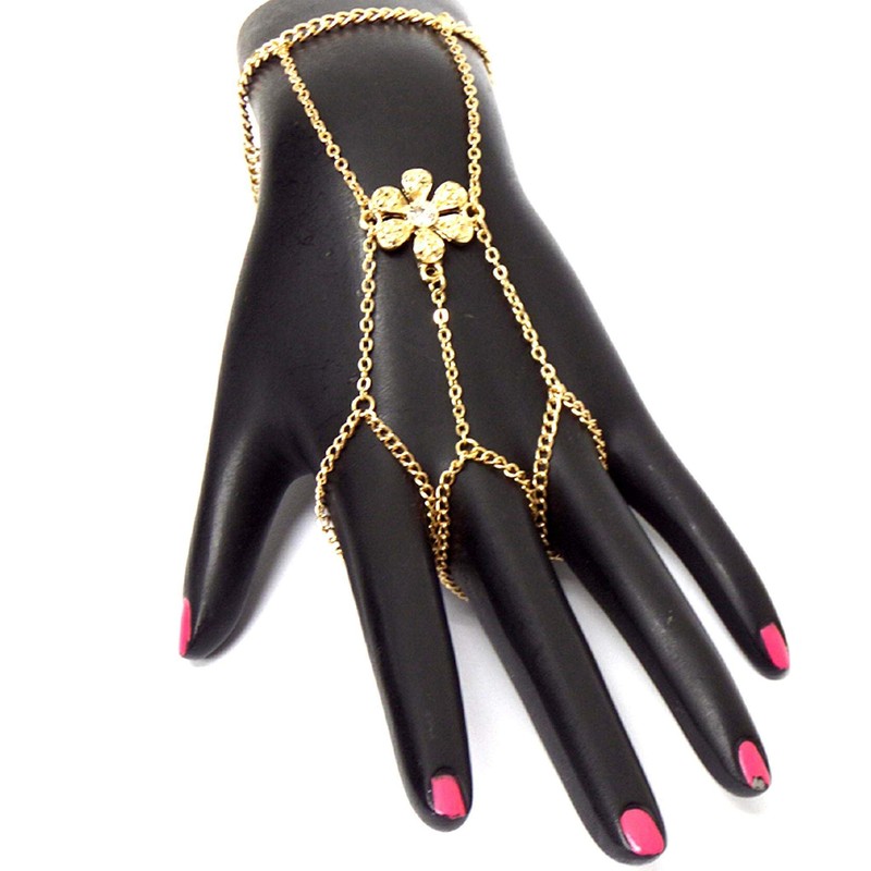 • Single Flower With Chain Slave Ring and Bracelet Set Hand Chain / AZFJSBB185-GLD