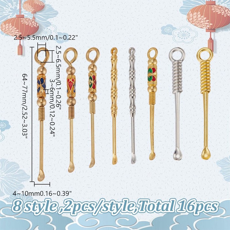 - The Package Includes -- You will receive 3 kinds of mini metal spoons, 8 types of ear spoon pendants, each style has 2pcs, a total of 16pcs will be received, the size of the ear spoon pendants may vary, please confirm whether the size of the product is what you need before purchase