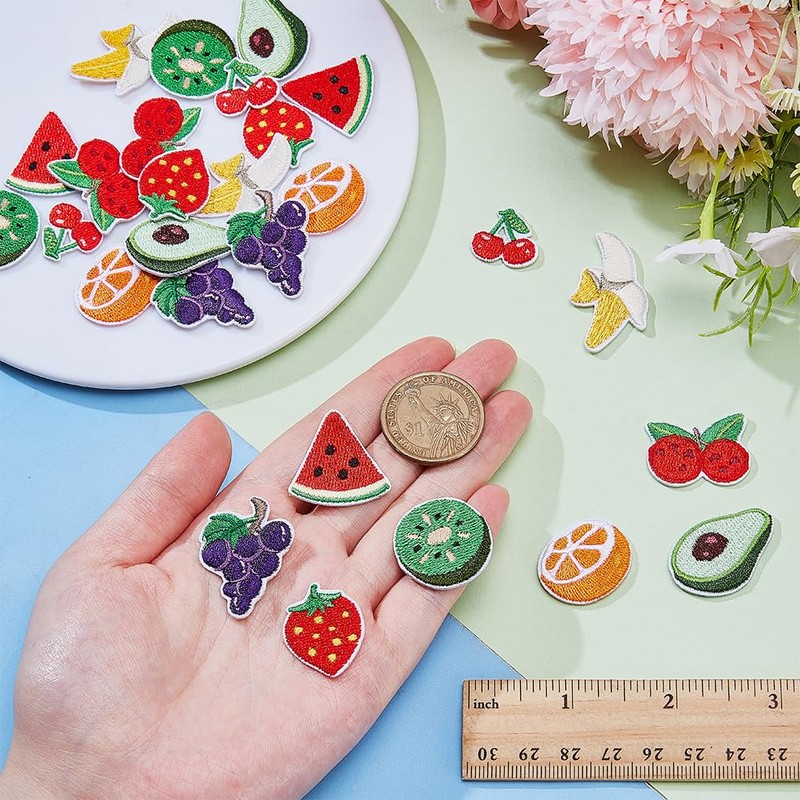 - Package Includes -- You will receive 6 sets of a total of 54 fruit embroidery patches. Each set contains 9 fruits of different shapes, with dimensions approximately ranging from 18 to 26mm in width, 16 to 34mm in length, and 2.5mm in thickness. The variety is extensive and is very suitable for you to add some personalized style to your clothing at home