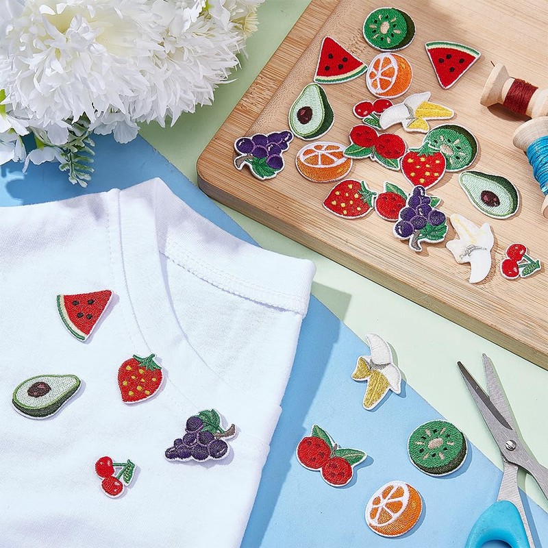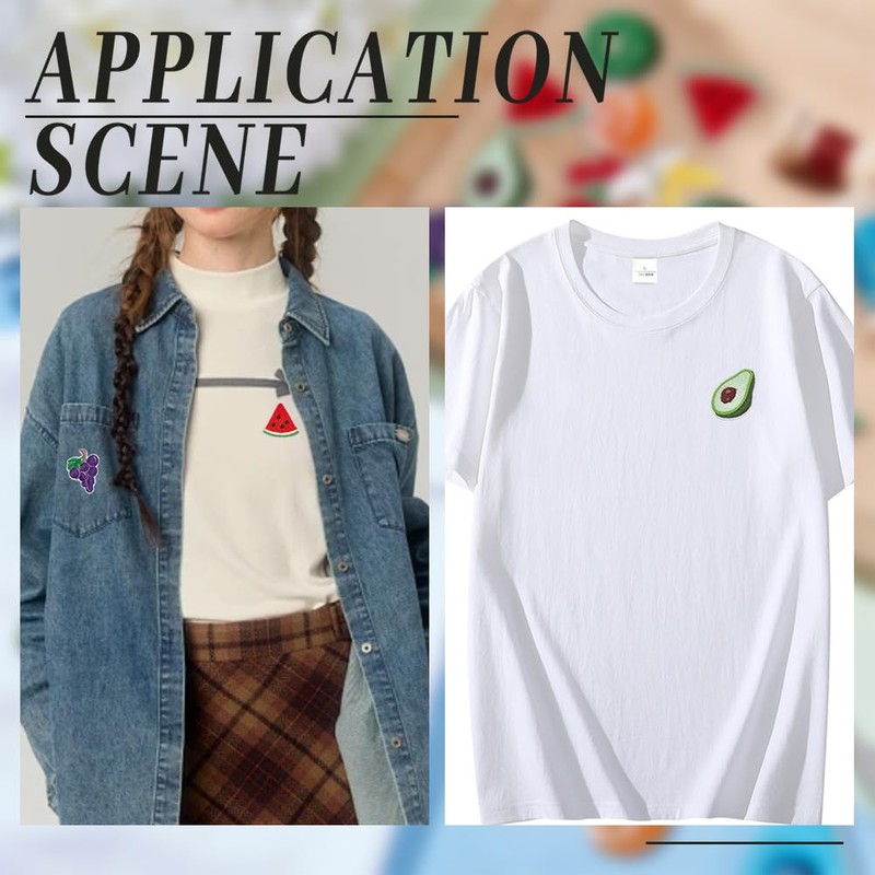 - Fruit Themed Patches -- The bananas, cherry, avocado, watermelon, strawberry, grape, litchi, orange, kiwi, etc in the shape of the embroidery patch can be used to decorate and hide tore hole or decorative clothing, bright colors and special design to make them more attractive
