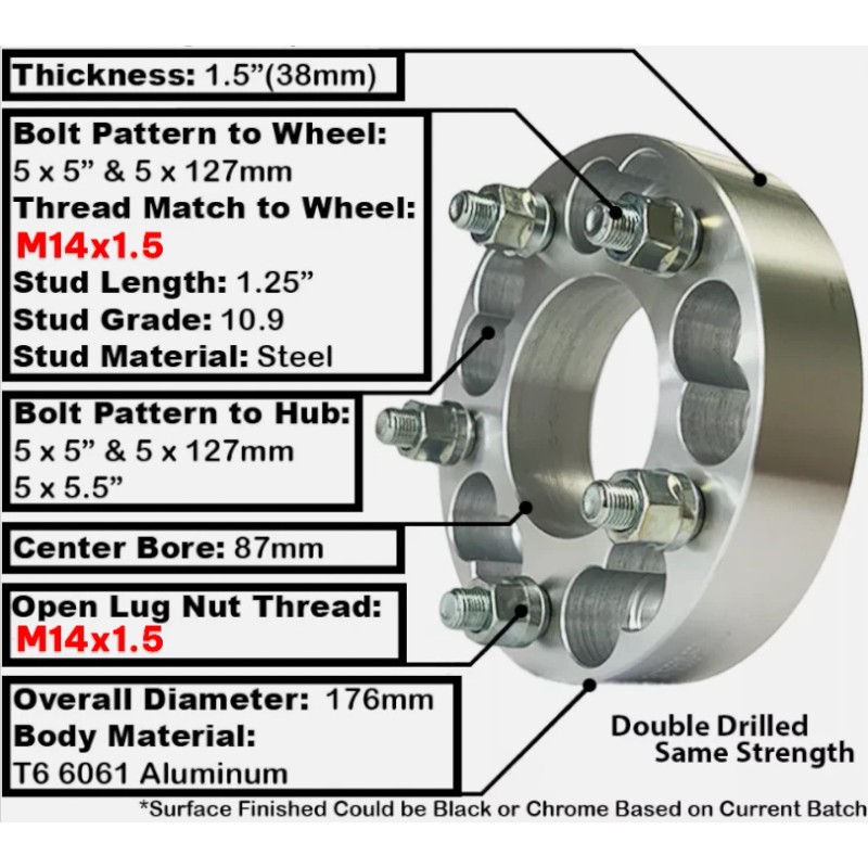 - Vehicle Hub Bolt Pattern:5x5"(127mm) or 5x5.5"